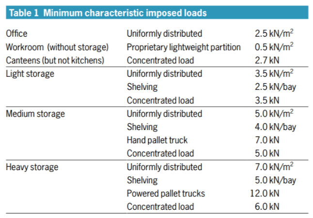 Loads are calculated using kilonewtons per square metre (kN/m²).